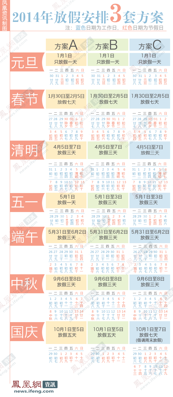 2014年放假安排3套方案