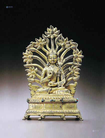 15世纪铸造的莲花生佛像于2013年6月以89.7万元拍卖成交。莲花生是藏传佛教宁玛派的祖师。 资料图片
