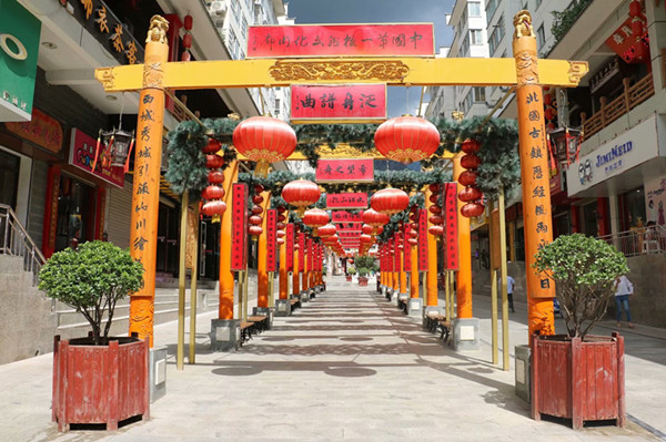 从北宋始建的舟曲城关小镇,在历史的烟云沧桑中蹒跚而行,尤其是经历2010年“8·8”特大山洪泥石流灾难后劫后重生、凤凰涅盘。如今,城东是一片规整的现代高楼大厦民居,城中的小山丘上耸立着高大的驼岭钟楼,两侧是宽阔舒展的同舟园广场和涌泉园广场,城西是楼宇鳞次栉比的旧城区,城南则有清清的白龙江逶迤而流。在这古老而崭新的小城小镇里走走,最能显示小城的历史遗风、最能彰显居民的文化脉象、最能让游客赏心悦目的,当数改造一新的南大街和西大街两条人文步行街了。漫步在这两条大街上,那星罗棋布、流光溢彩的一柱柱灯联、一个个雕塑、一顶顶吊灯、一方方砖雕,让人感觉到大山深处似有一位清雅娟秀的小家碧玉,小院小楼里处处有着秀才在吟咏执毫,千百年来,北国藏汉交界处隐居着一个别样的江南清秀小镇。