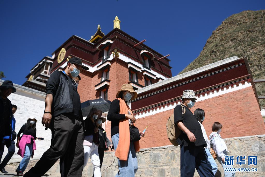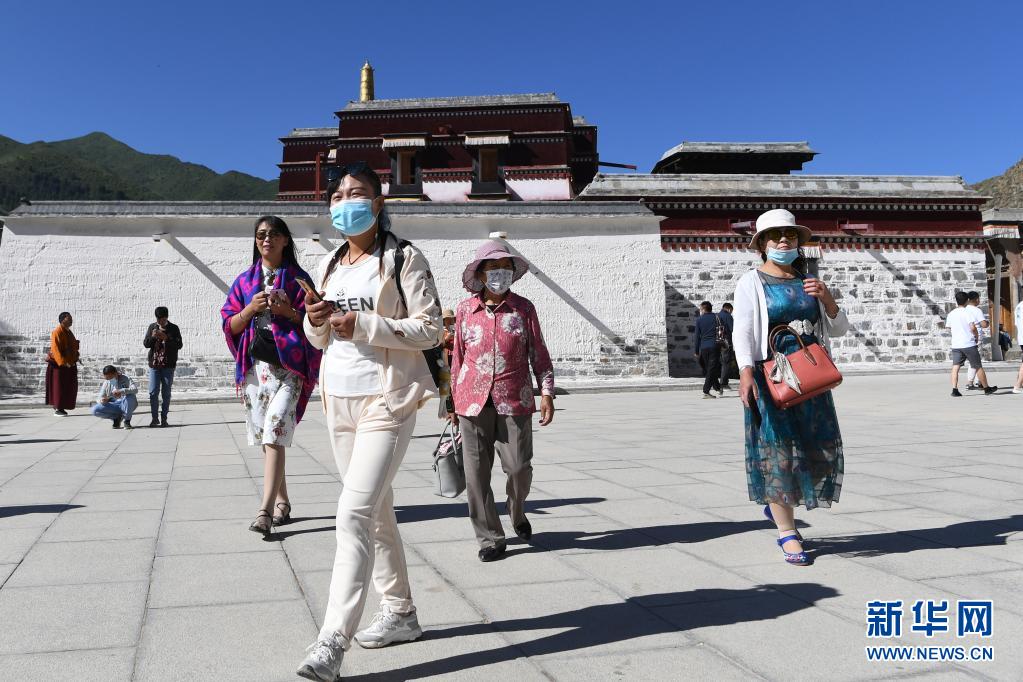 7月12日,游客在拉卜楞寺参观。新华社记者 陈斌 摄